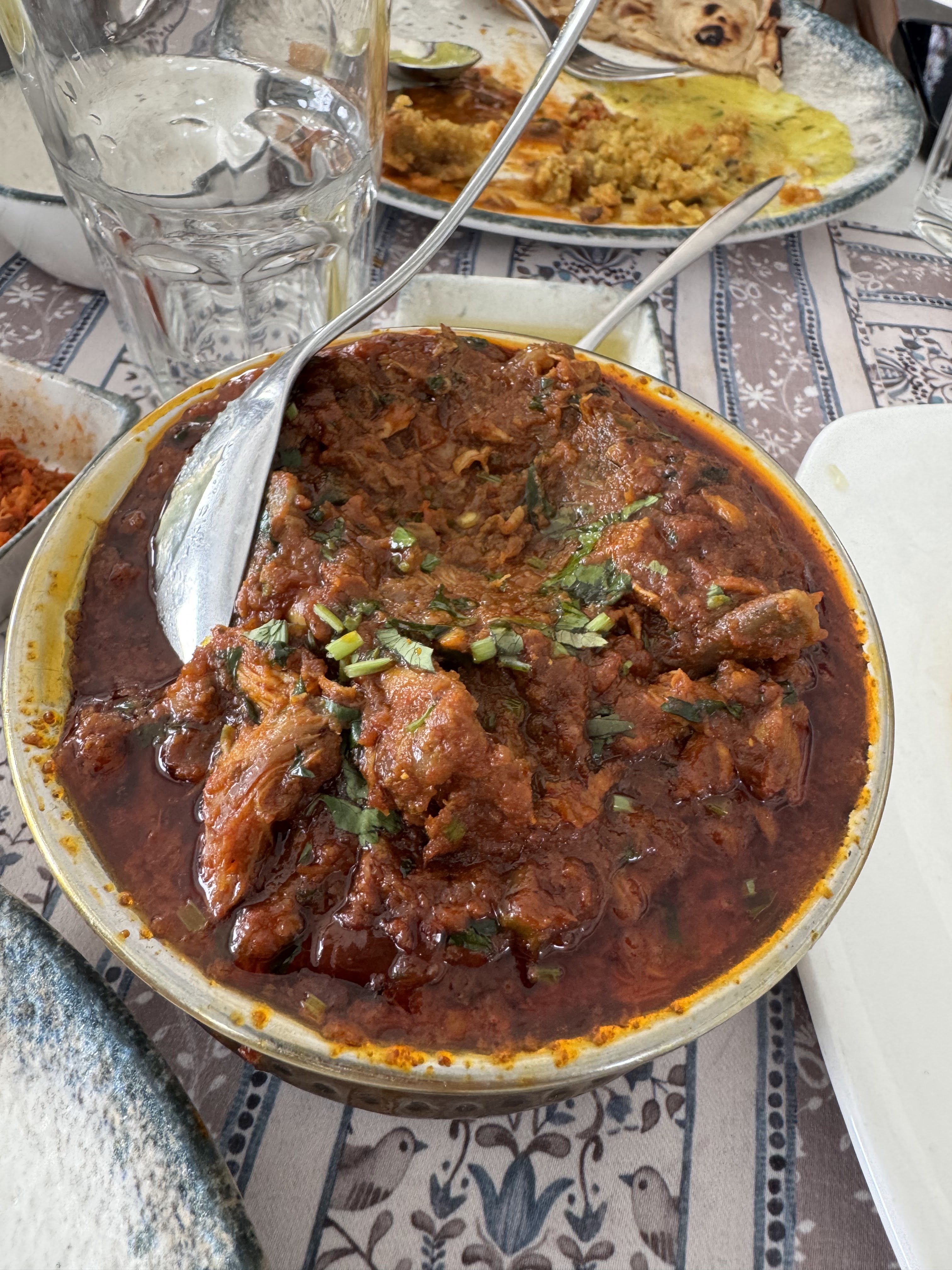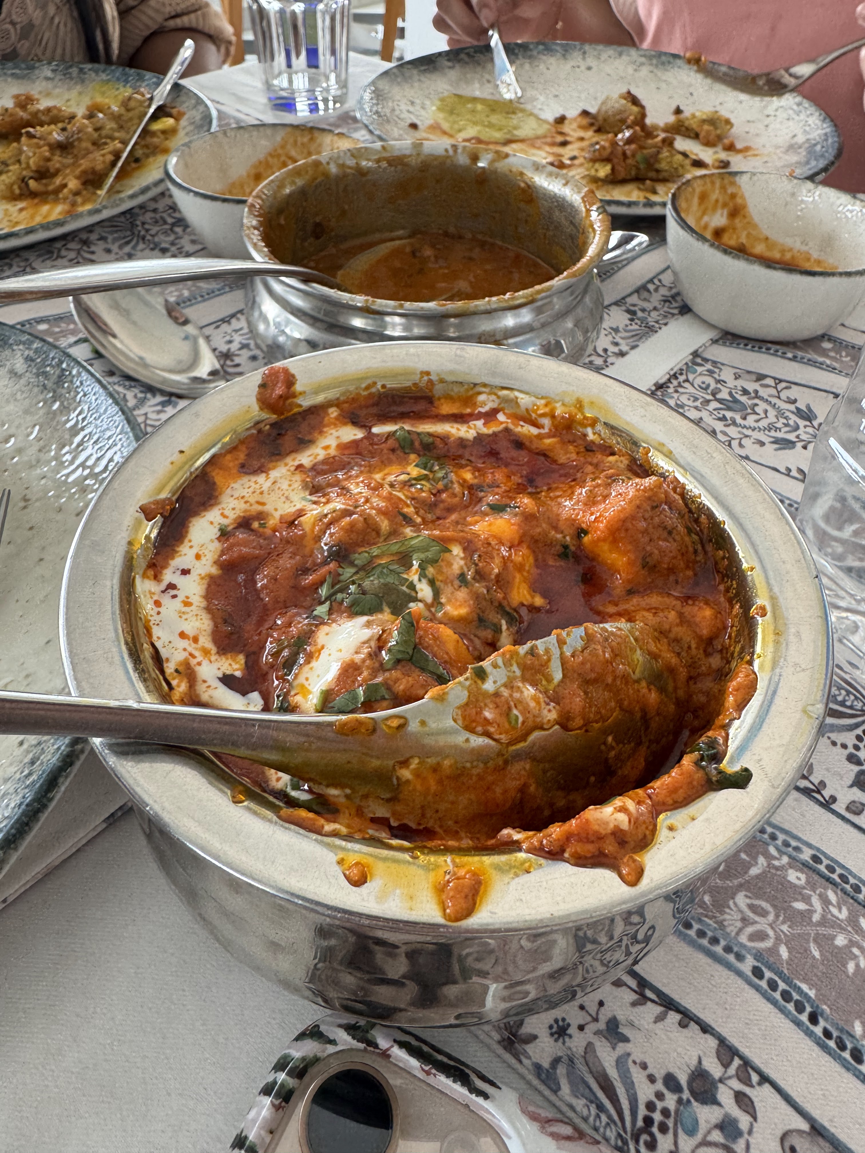 Set against the backdrop of a beautiful hotel and views of City Palace, Ambrai restaurant serves elegance with every dish, from traditional dishes to beautiful modern cocktails. We had a vegetarian feast but what I remember most was the fragrant Squirrel Sour. Still wishing we had stolen the glassware.