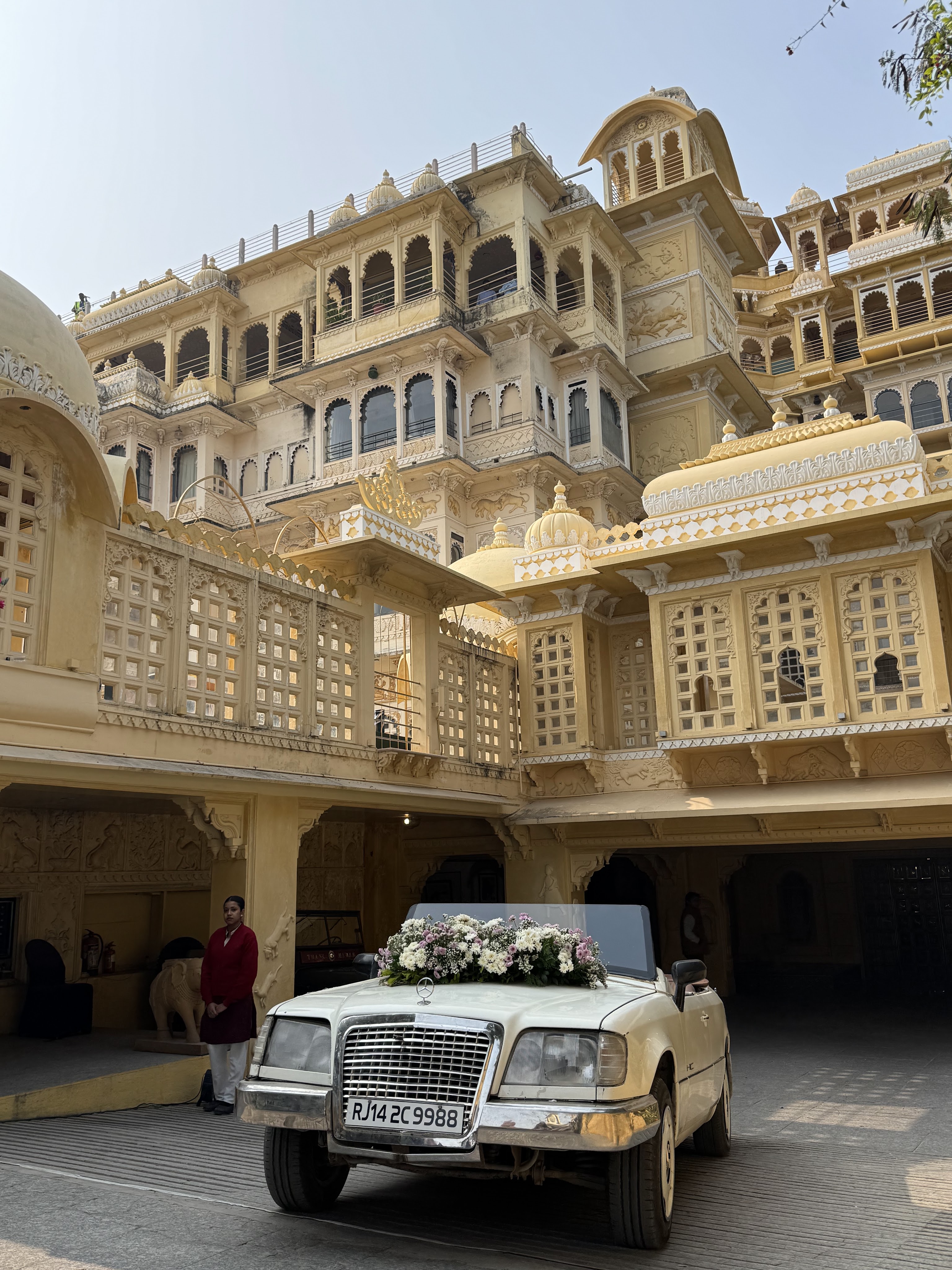 A scenic road takes you to a hidden gem nestled in the hills of Udaipur: the Vintage Car Collection at Fateh Vilas, a must stop for car enthusiasts. Behind dramatic Indian heritage doors lies a collection that ranges from Land Rovers to Rolls Royces to an Impala and even an old carriage. My personal favorite was a burgundy behemoth, dubbed the “mafia car.”